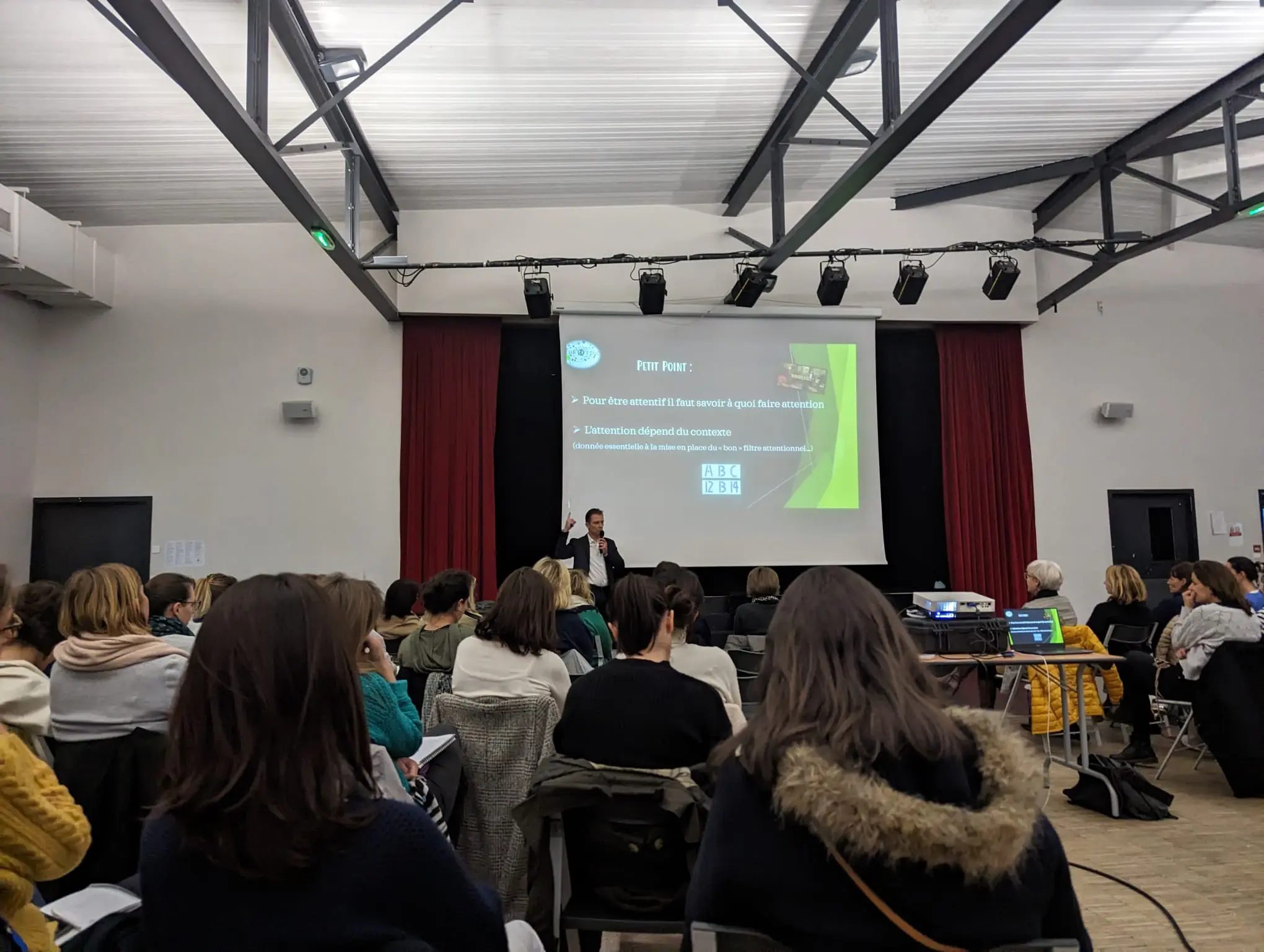 Le mercredi 12 avril, dans la salle S. de Beauvoir de Treillières, s’est tenue une conférence sur l’attention, organisée par les réseau des établissements du territoire du Gesvres à l’Erdre : les écoles de Sucé, Treilières, La Chapelle-sur-Erdre et Grandchamp, ainsi que le collège H. Camara de Treillières.