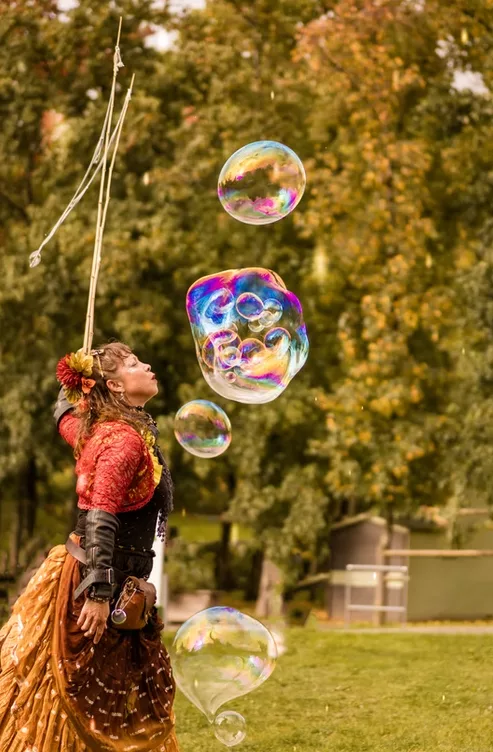 «Venez redécouvrir la bulle de savon autrement et partager un instant de poésie en famille. Comme dans un rêve et où les âmes d’enfants de tous les âges vous serez invité à souffler vous aussi sur les créations d’Emi La Fée.»