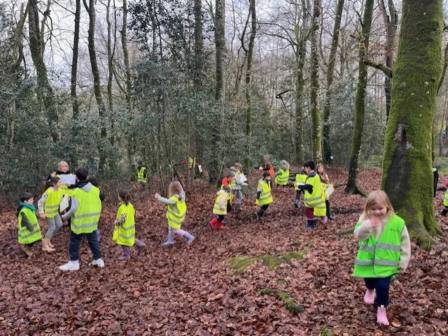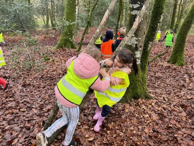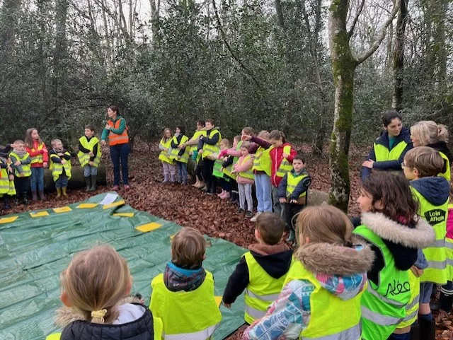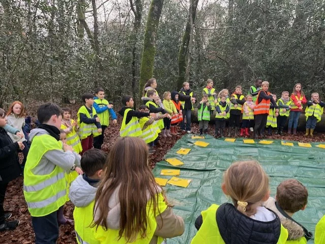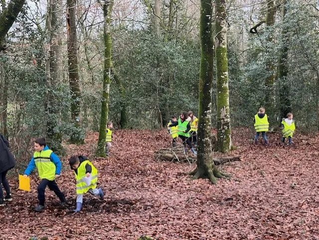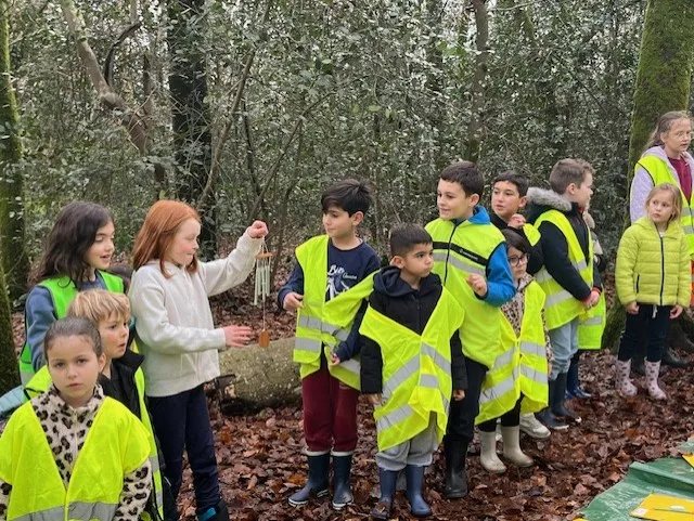 En novembre, les élèves de la classe de grande section et ceux de CM1 se sont retrouvés pour tester la classe du dehors !